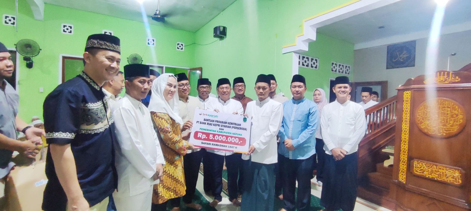Dalam kegiatan tersebut, Bupati Natuna menyerahkan zakat mal kepada para mustahik serta menyalurkan sejumlah bantuan sosial sebagai bentuk kepedulian pemerintah daerah terhadap masyarakat. Selain itu, Bupati juga memberikan cenderamata atau buah tangan kepada para jamaah laki-laki maupun perempuan sebagai simbol kebersamaan dan perhatian pemerintah.