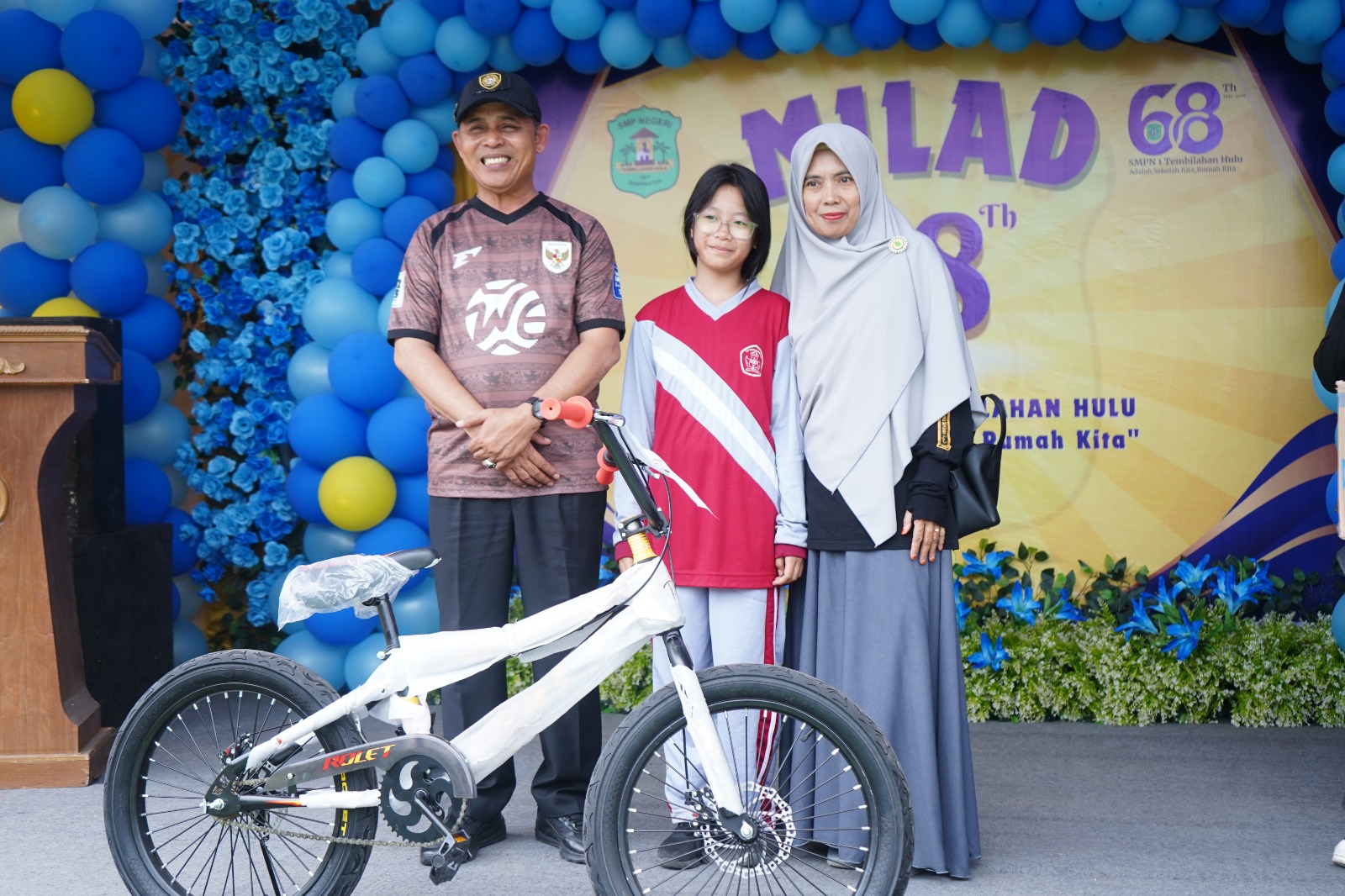 Momen kebersamaan terasa semakin istimewa ketika Bupati bersama Wakil Bupati memotong tumpeng dan kue ulang tahun, melepas balon ke udara, serta menyerahkan hadiah door prize kepada para pemenang undian. Perayaan ini bukan hanya menjadi wujud rasa syukur atas perjalanan panjang sekolah, tetapi juga sebagai pengingat masa-masa indah saat duduk di bangku SMP.