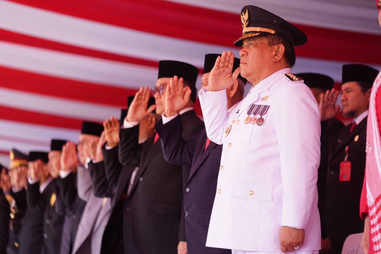 PEKANBARU — Bendera Merah Putih kembali berkibar megah, menandai peringatan Hari Ulang Tahun (HUT) ke-80 Republik Indonesia yang dirayakan dengan penuh khidmat di Halaman Kantor Gubernur Riau, Minggu (17/8/2025).