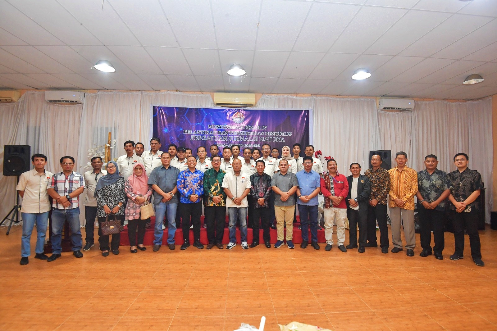 Sebanyak 22 orang pengurus dilantik oleh Sekretaris Daerah Natuna, Boy Wijanarko Varianto, yang hadir mewakili Bupati Natuna. Prosesi berlangsung hangat dengan nuansa kebersamaan, dihadiri unsur Forkopimda, OPD, organisasi pers, dan tamu undangan yang sebagian besar mengenakan batik.